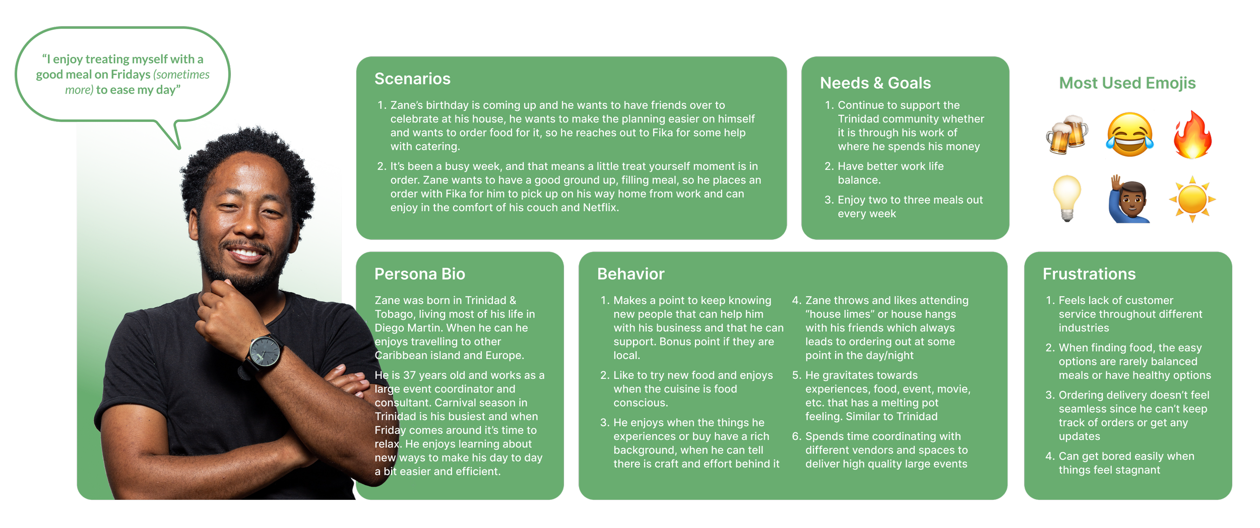 Through a series of virtual one-on-one user interviews and an in person focus group session, I could further understand where Fika stands with users as well as how online food ordering is used and perceived in Trinidad.