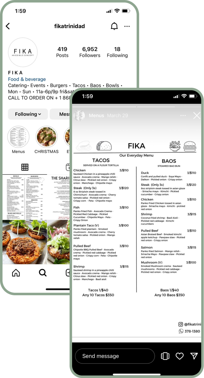 Mobile based Food ordering app for FIKA. A Trinidad based catering company currently operating solely through Instagram, Fika wants to expand and facilitate services for customers