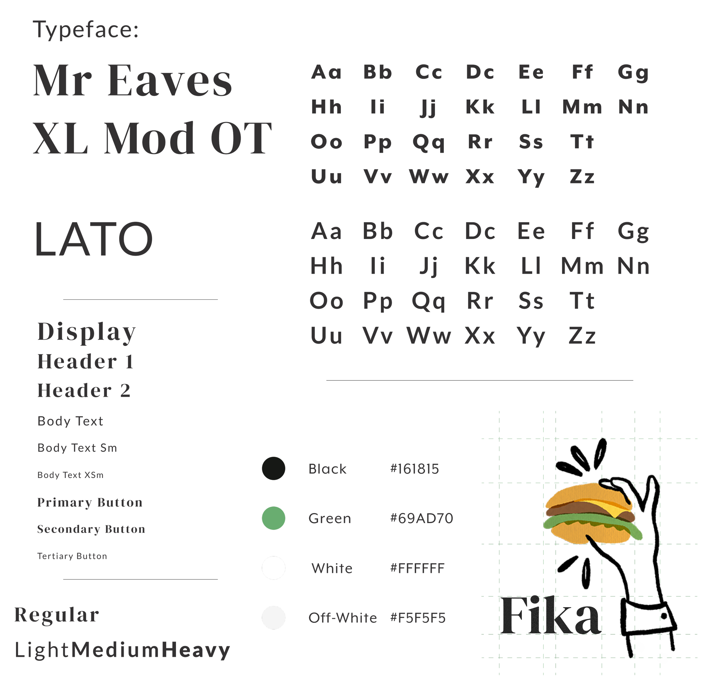 Throughout the process Fika’s style guide was underworks. It needed to reflect the existing brand, yet ownership was flexible with typeface and color choices.