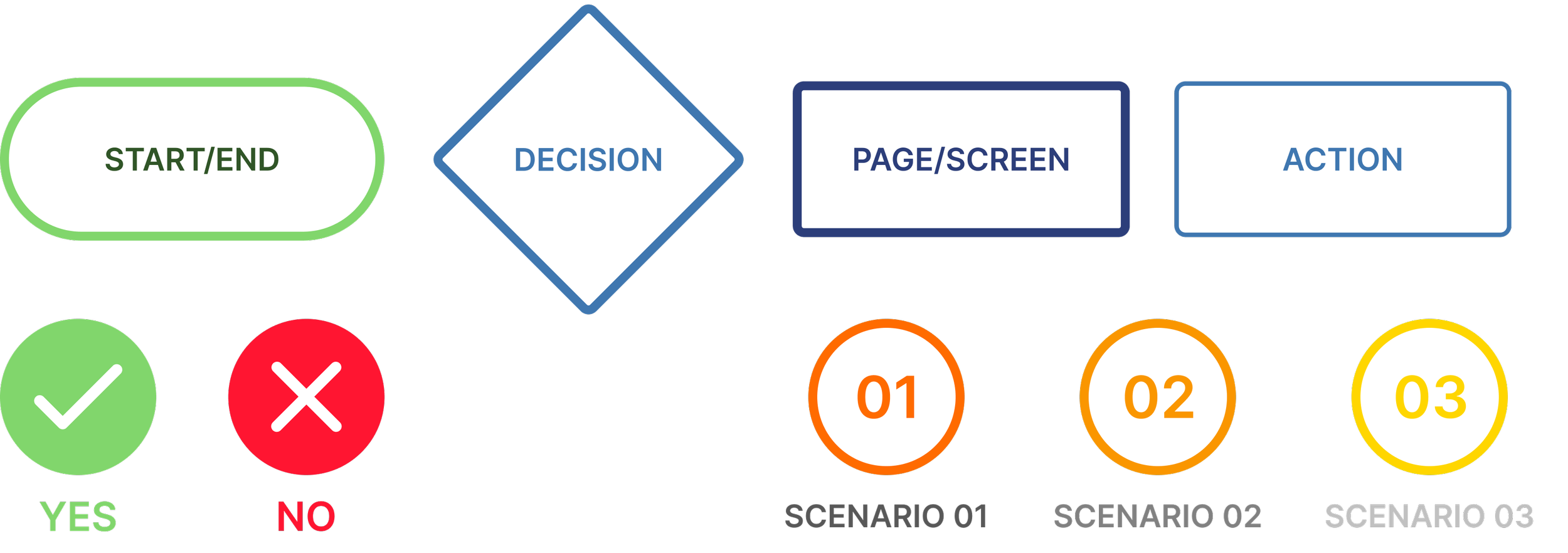 Then I defined an in depth user flow sequence that mapped out three scenarios for Elena:
