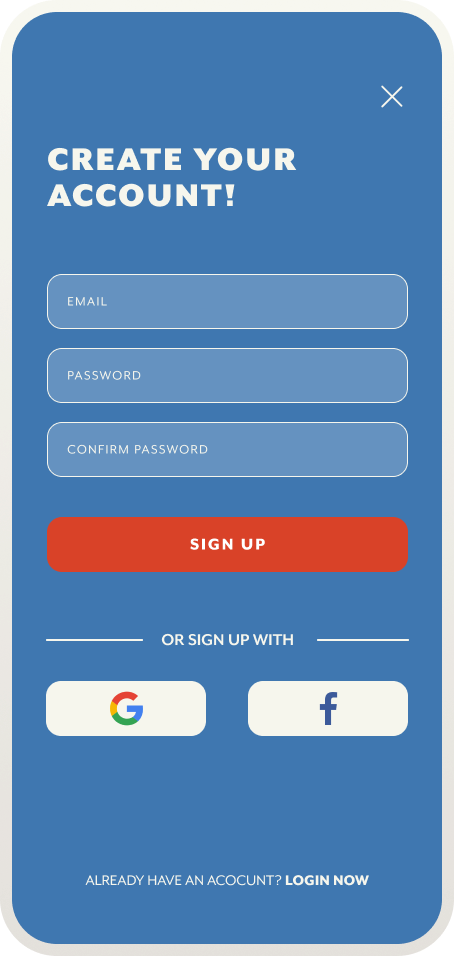 Scenario 01: Elena is visiting Near Here for the very first time and wants to be able to access all the features it provides, so as a first time user she needs to sign up and create her account.